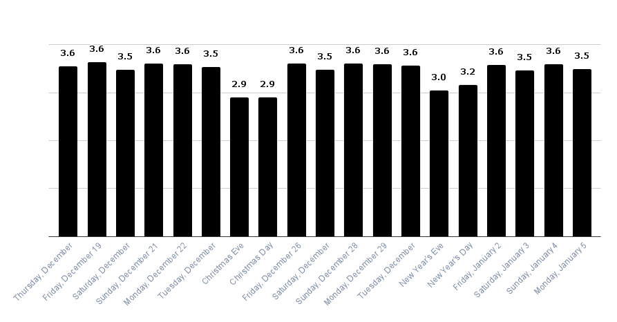 To prepare for holiday travel this year, 1 in 7 travelers are adding Disruption Assistance to their holiday travel plans on Hopper. Across HTS (Hopper Technology Solutions)'s B2B partners, travelers are purchasing Disruption Assistance at nearly a 30% higher rate for December 23rd (the day before Christmas Eve) than the December average.