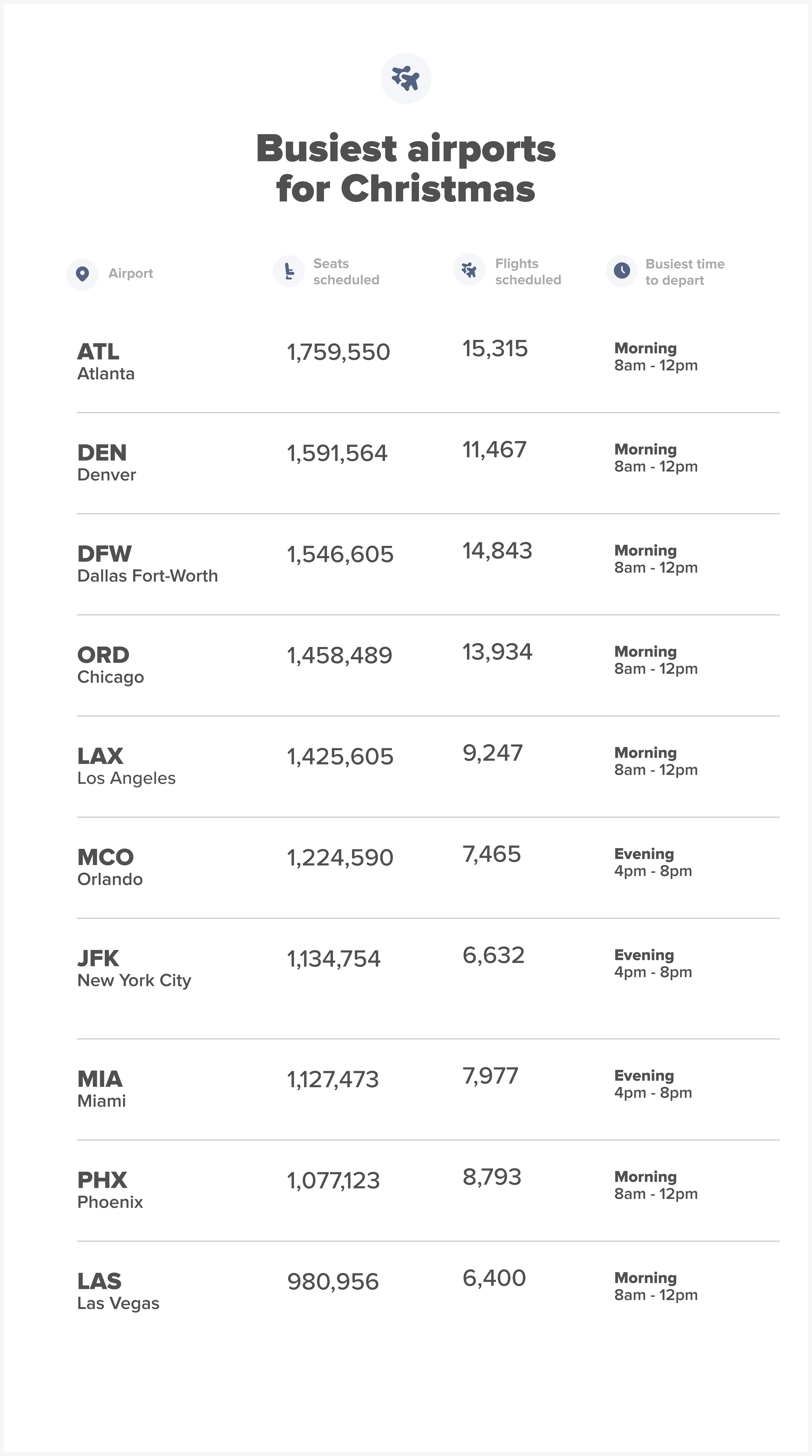 Over 40 million seats are currently scheduled to depart from U.S airports between Monday, December 22nd and Friday, January 2nd.
