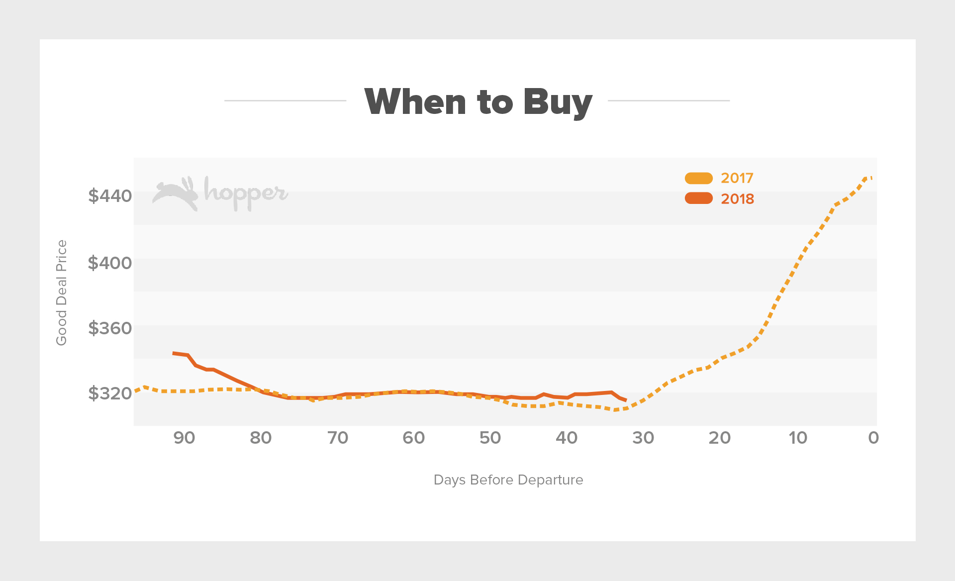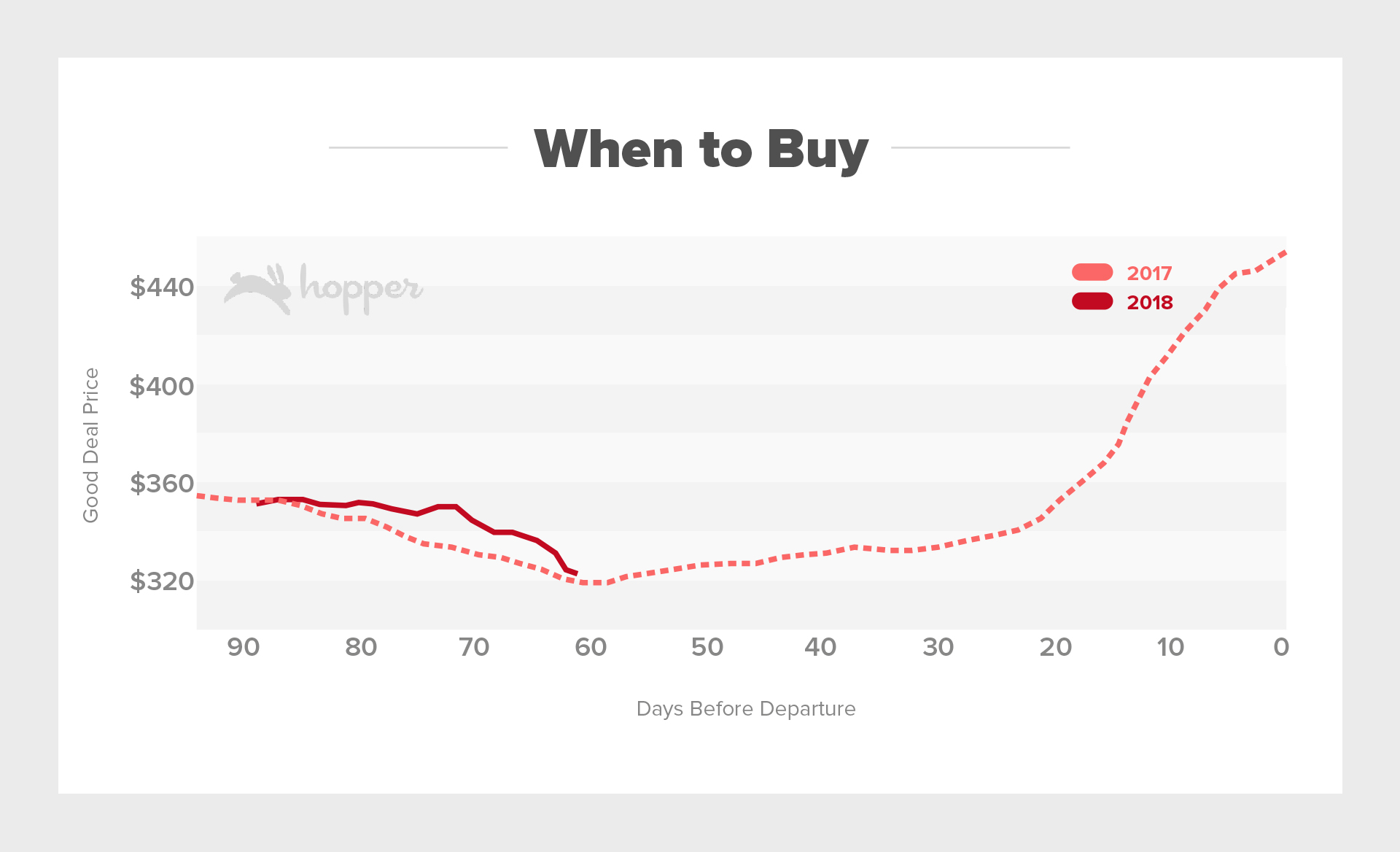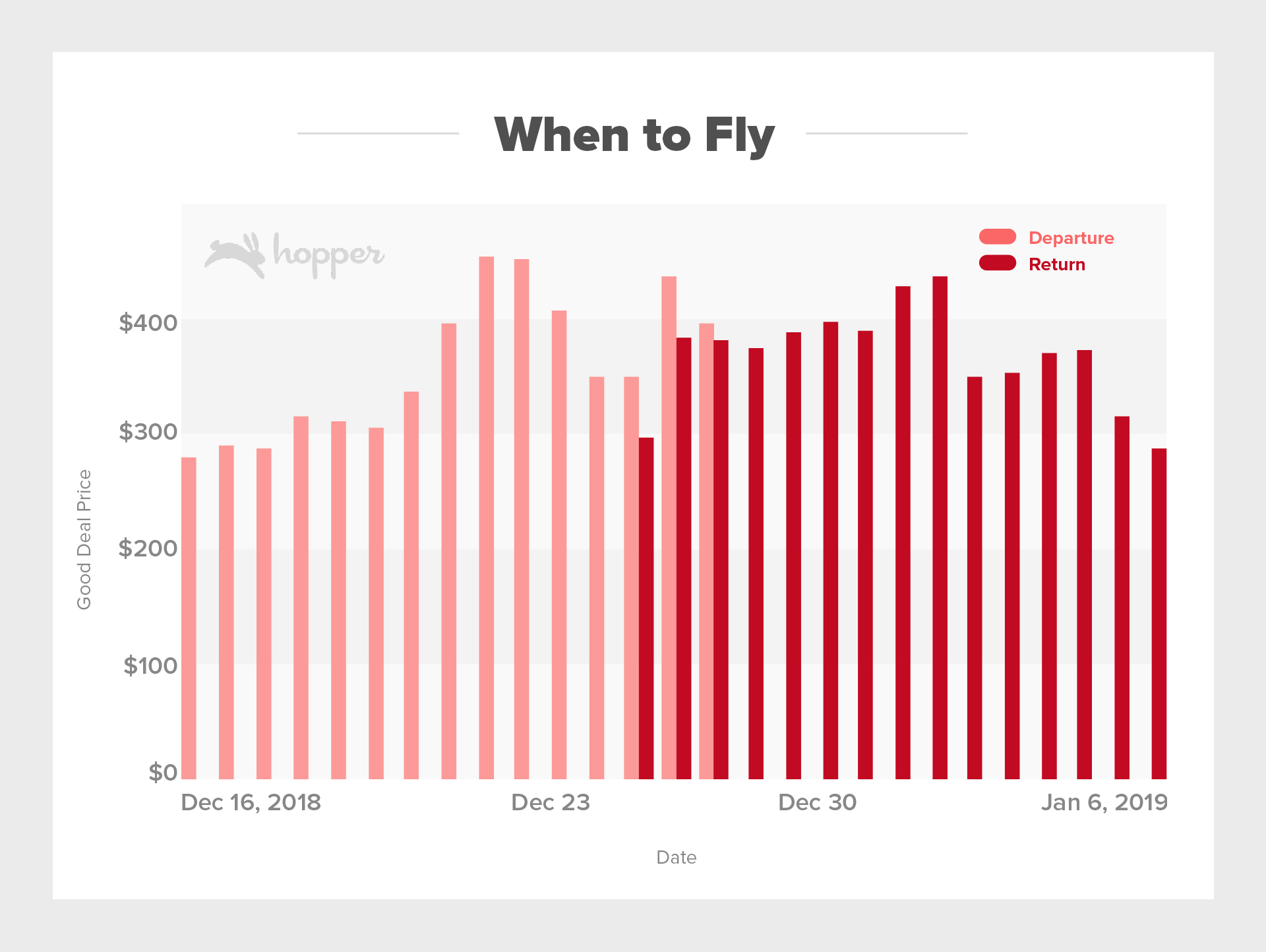 Given the high level of price volatility around holiday flights, our team at Hopper analyzed our historical flight archive to put together some guidelines on how to save. However, the easiest way to score a deal is to download Hopper and set up trip-specific alerts so you'll know the instant you should book for your exact dates and destination.